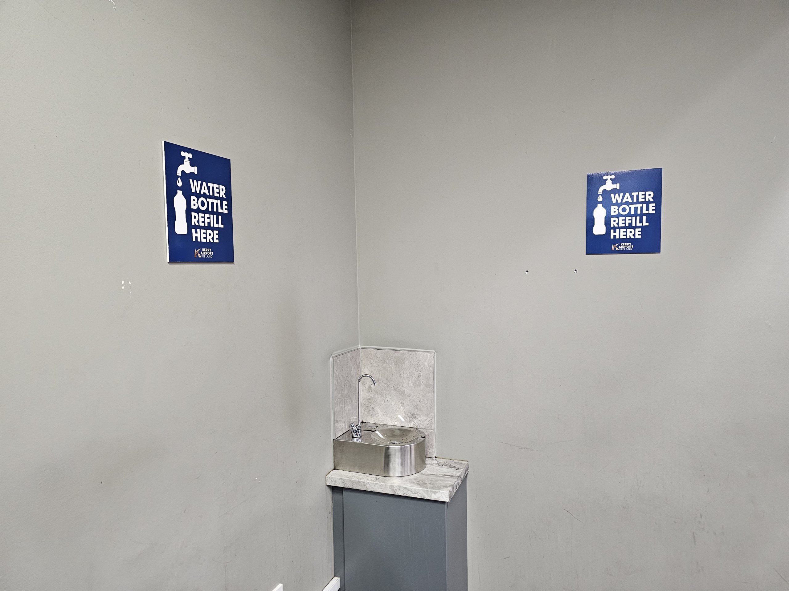 Du kan fylde din egen flaske med gratis drikkevand efter sikkerhedskontrollen ved afgangsgaten.