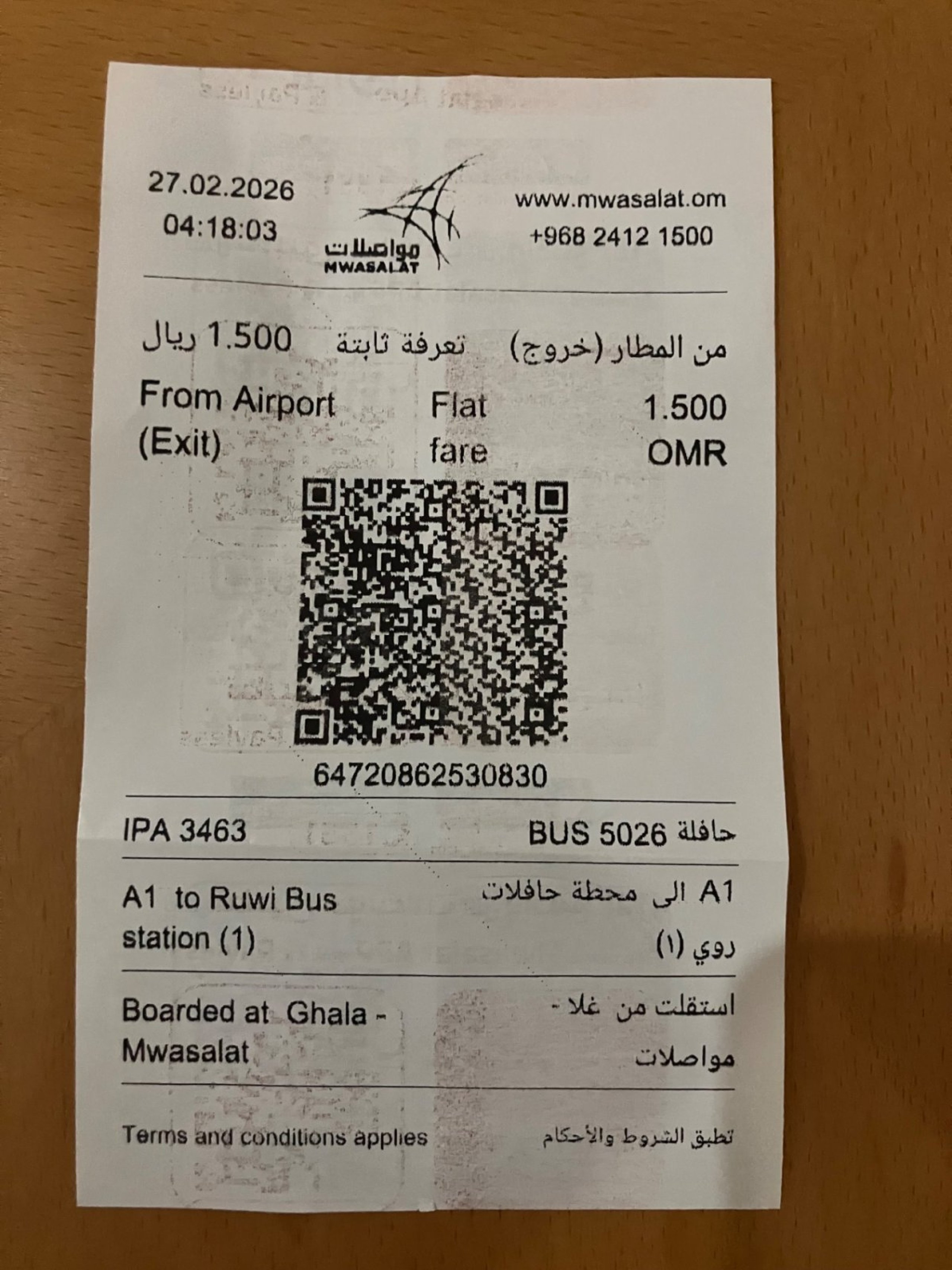 A1-busbillet fra lufthavnen koster 1,5 OMR, dagens oplevelse