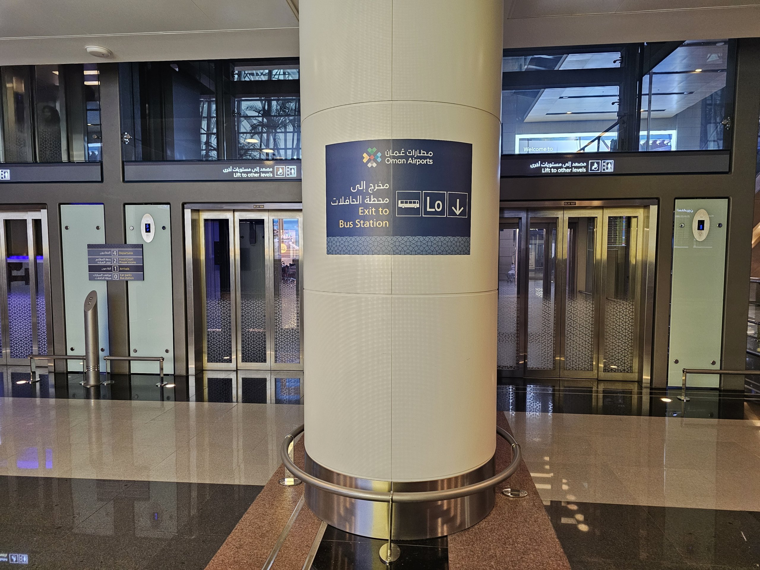 Linje A1 forbinder lufthavnen med centrum og Ruwi busstation. Lufthavnen er ikke endestation for A1-linjen, så der kører også busser herfra til udkanten af Muscat til Mabelah busstation i Seeb, som ikke er et attraktivt rejsemål for turister.