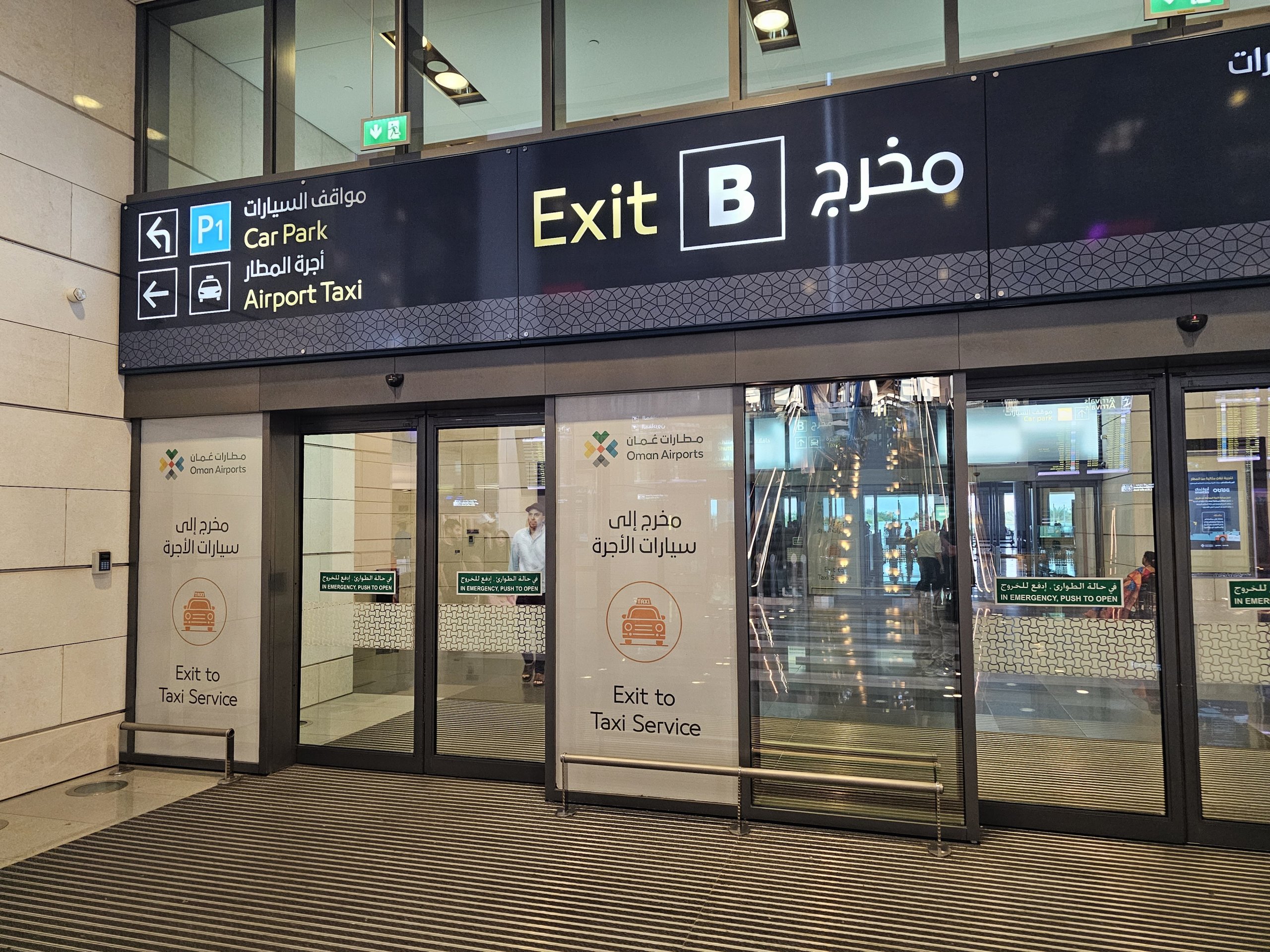 Udlejningsskrankerne findes lige i ankomsthallen. Desuden ligger lufthavnen på Omans hovedvej, skiltningen er meget god, og det er problemfrit at rejse i bil i Oman, selv for udenlandske besøgende.