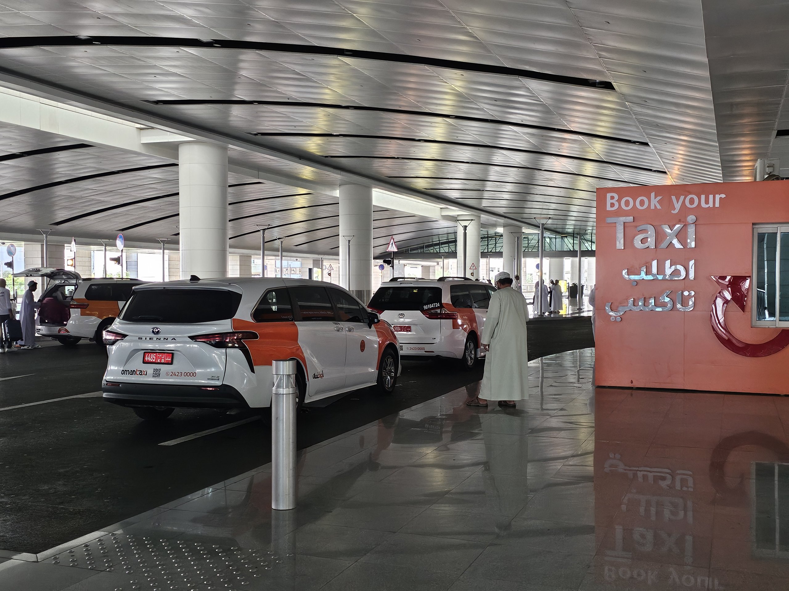 Den mest bekvemme transport til centrum af Muscat er med taxa. Der er biler til rådighed døgnet rundt i lufthavnen og i byen. Kørsel sker altid efter taxameter.