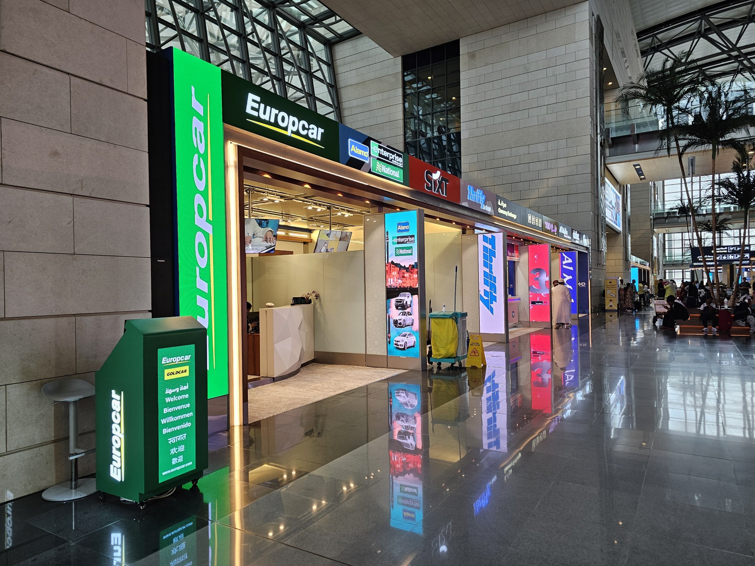 Der er mange internationale og lokale biludlejningsfirmaer i Muscats lufthavn.