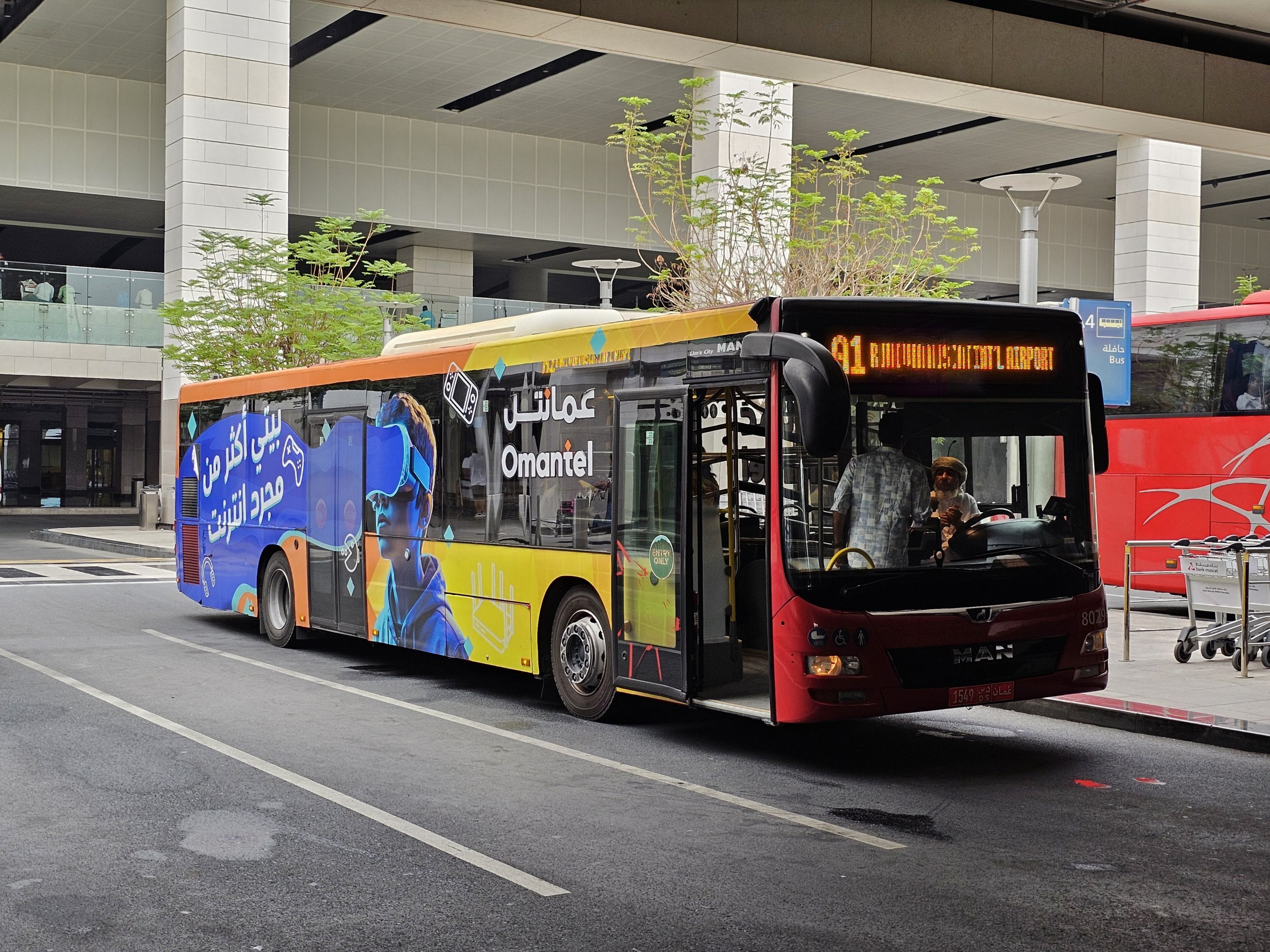 Der er to Mwasalat-linjer med offentlig transport til lufthavnen fra Muscats centrum og hovedbusstationen: mwasalat.om/city.