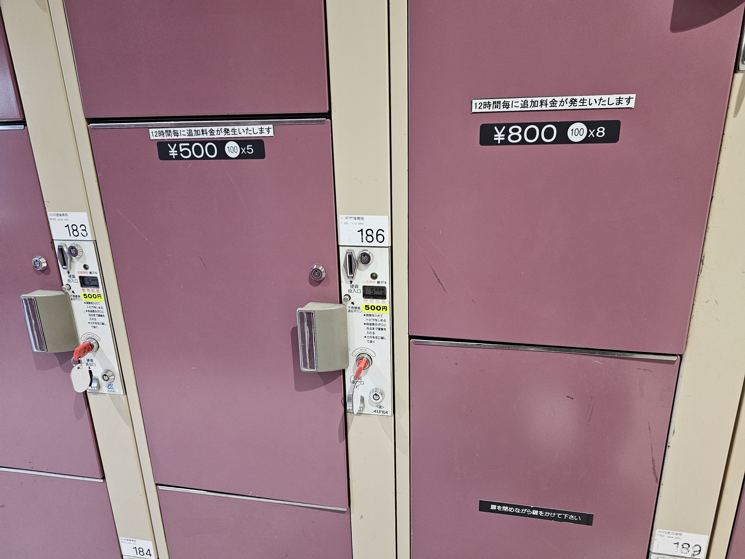 Priserne er opdelt efter skabets størrelse fra 500 jpy til 800 jpy.