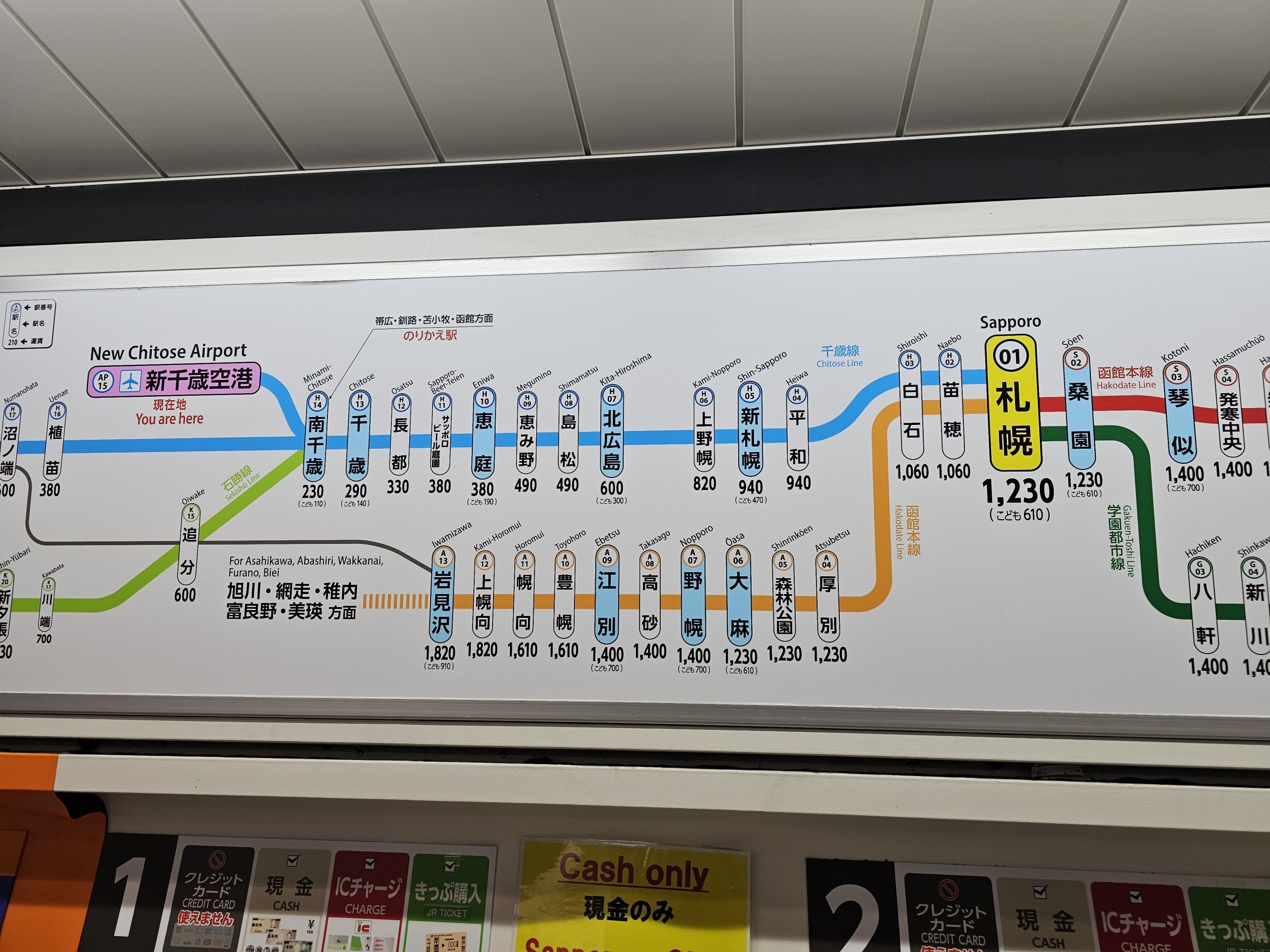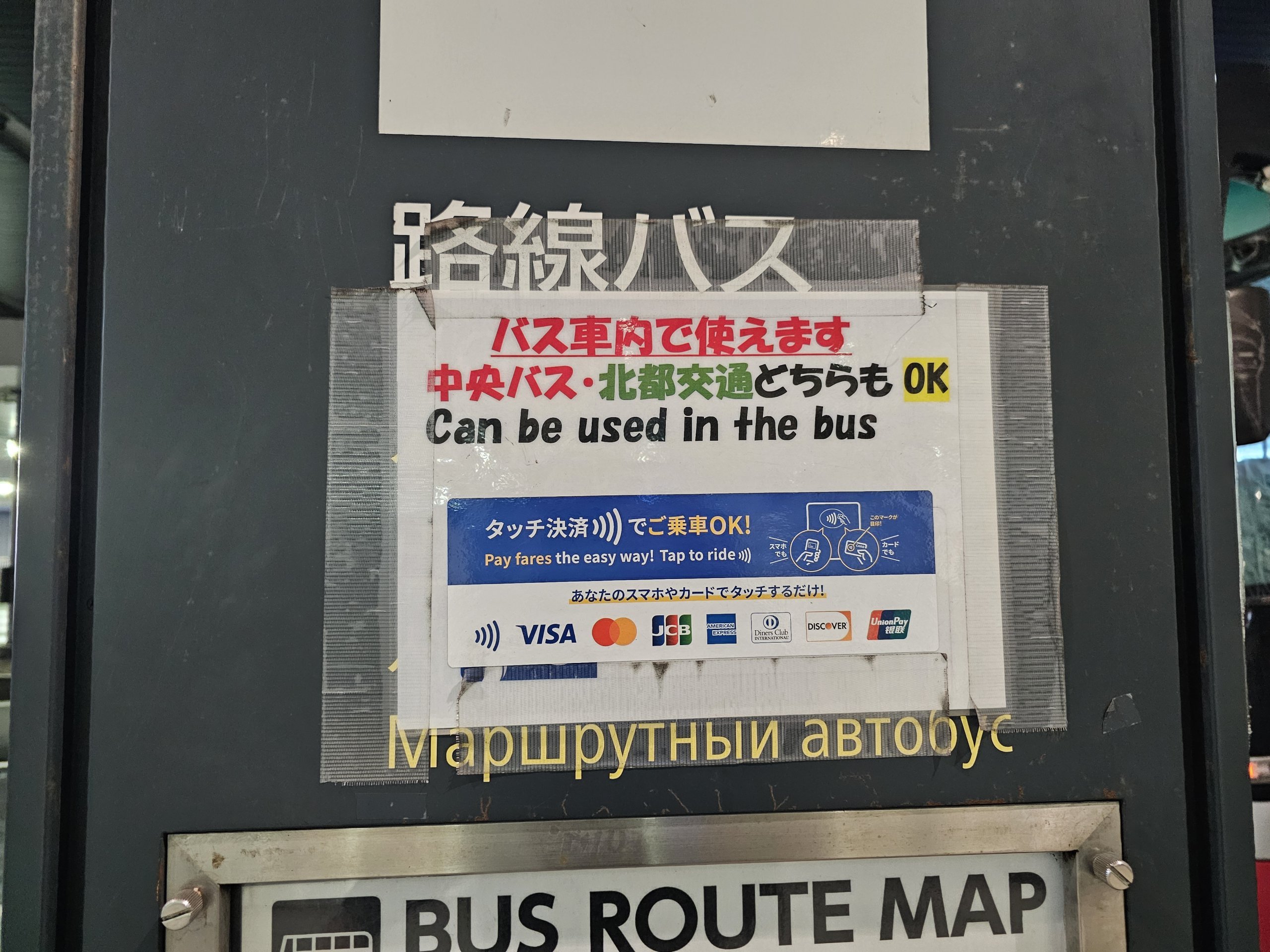 Alternativt kan alle japanske IC-kort bruges til at betale med - hvis du har et fra andre rejser til Japan, behøver du ikke bekymre dig om noget, du skal bare sætte det fast i drejekorset. Hvis du vil købe et Kitaca-kort, skal du igen kun have kontanter.