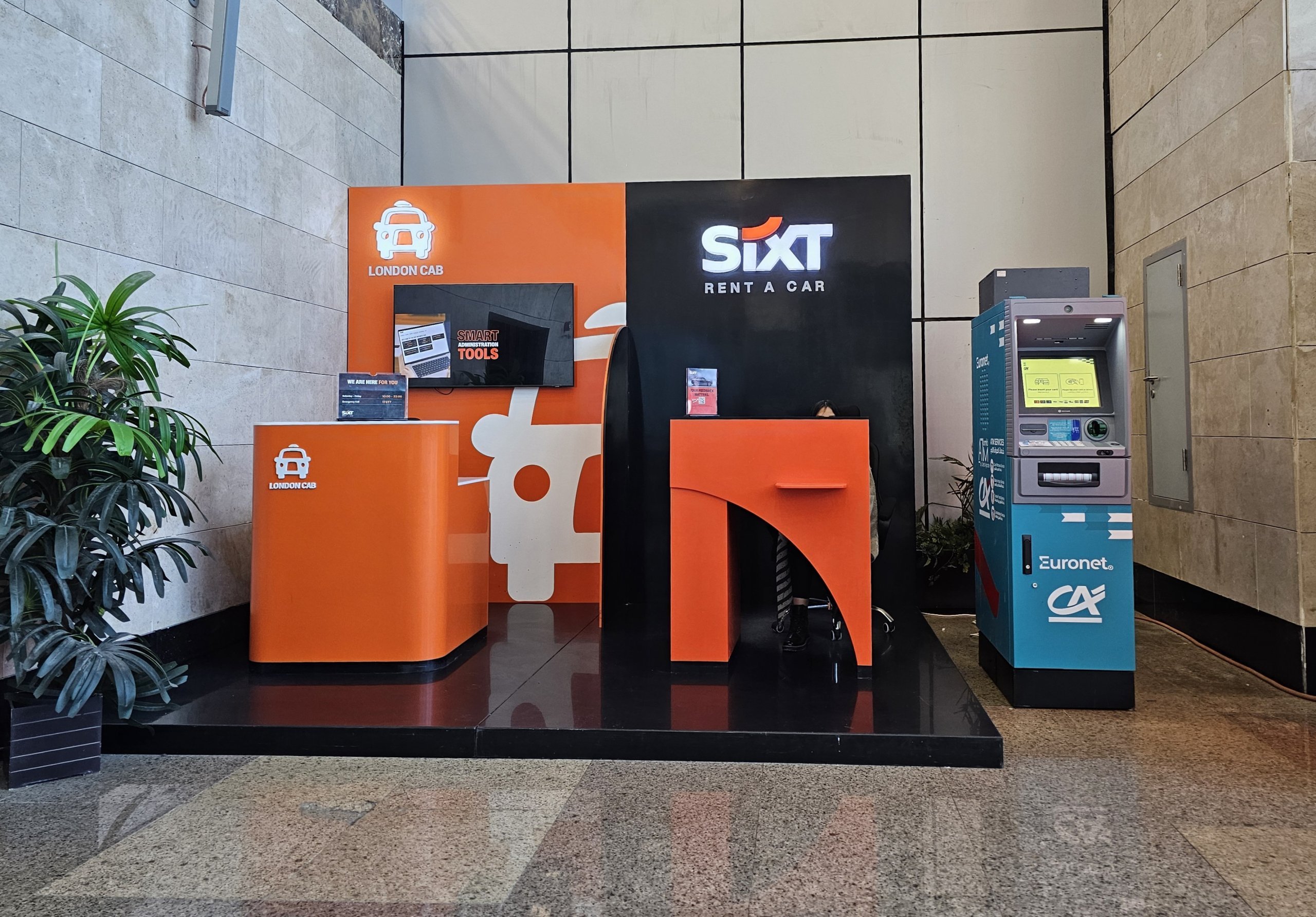 Der er en Sixt biludlejningsfilial lige i terminalen, men andre biludlejningsfirmaer tilbyder også en "Meet and Greet"-service, hvor en medarbejder venter på dig i ankomsthallen med din bil.