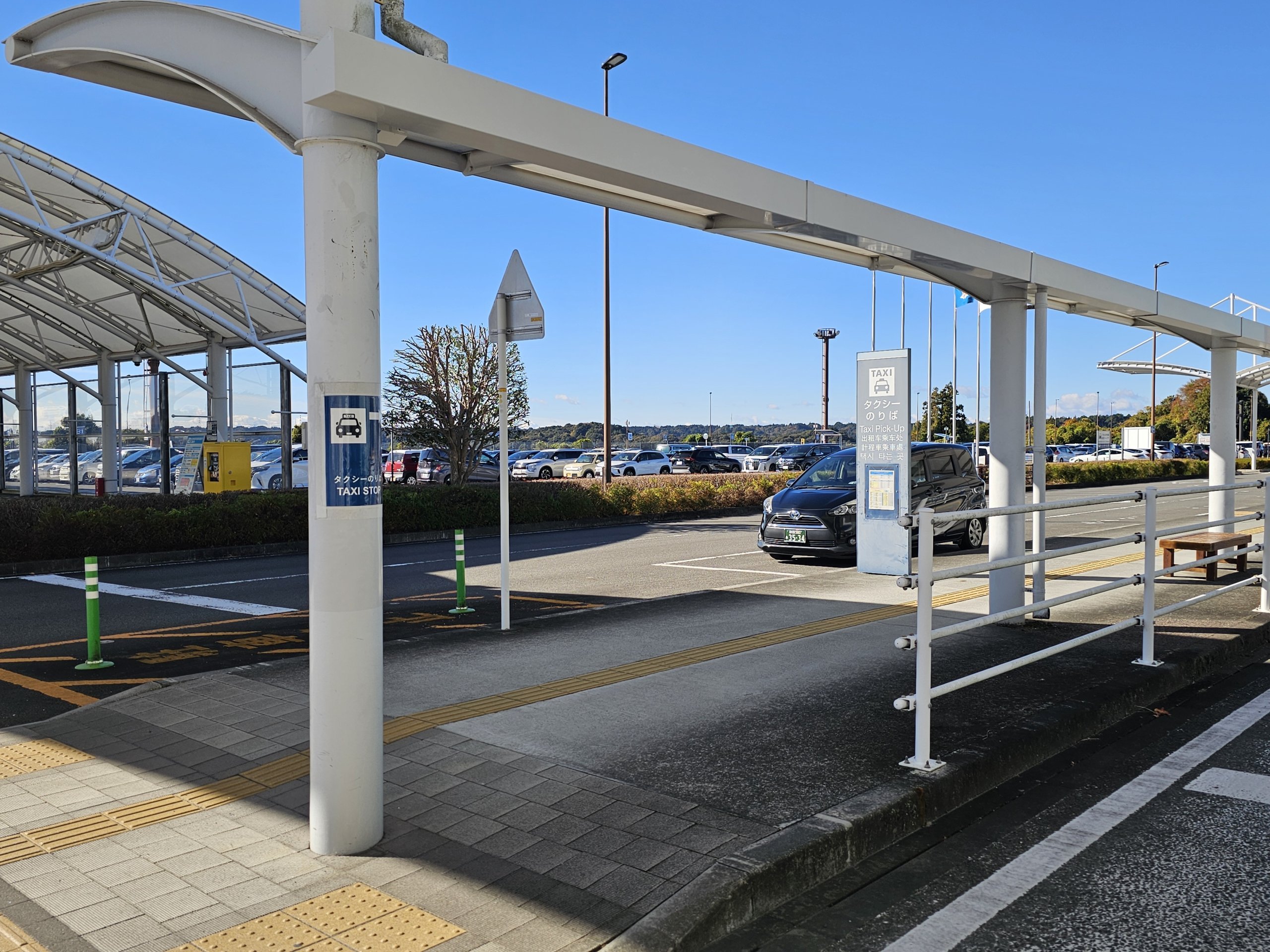 Jeg tog toget til Kanaya station, hvor jeg skiftede til en bus, der kørte til lufthavnen. Busstoppestedet er tydeligt markeret.