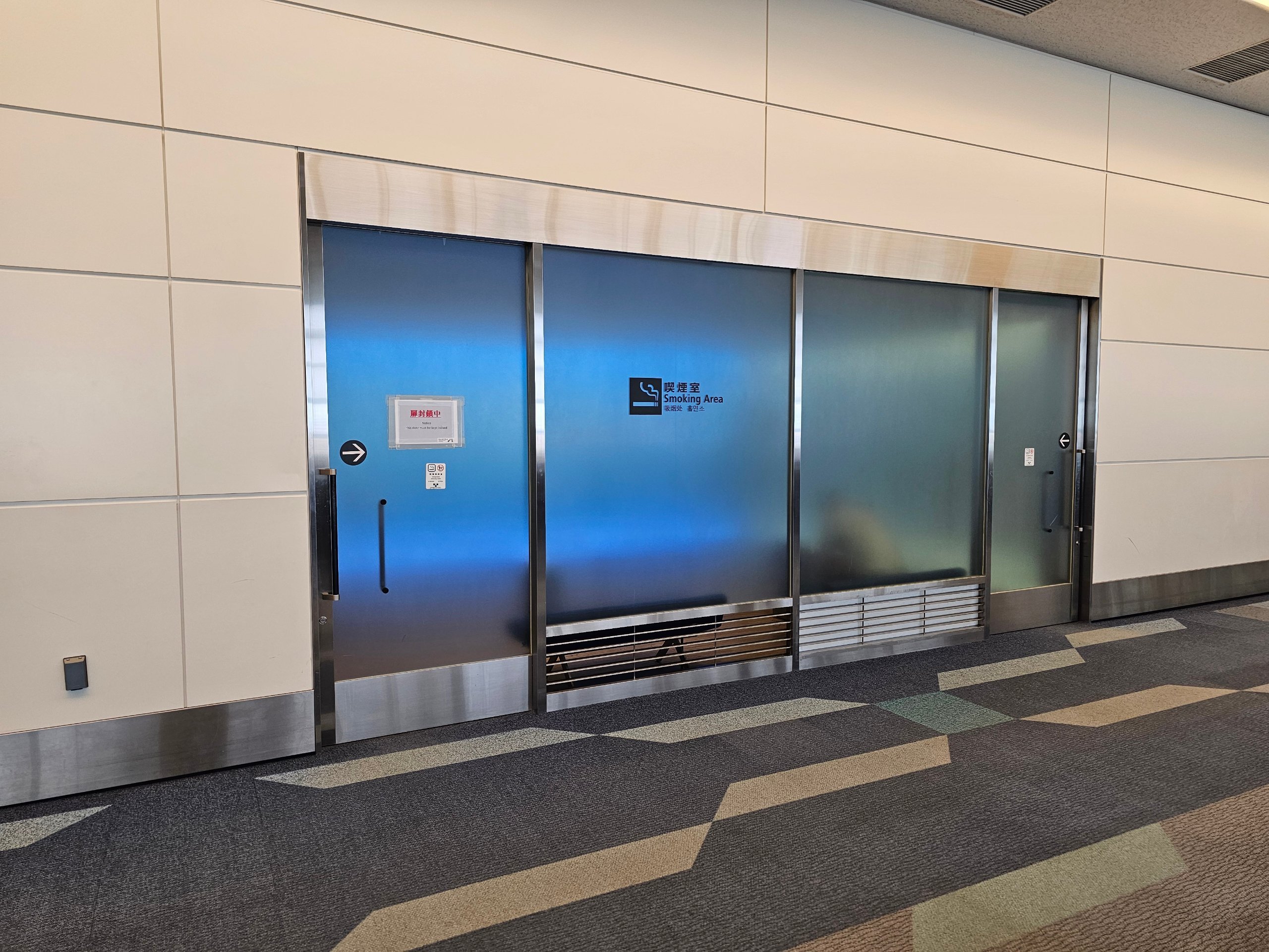Alle terminaler er udstyret med flere lukkede rygerum, herunder et område efter sikkerhedskontrollen.