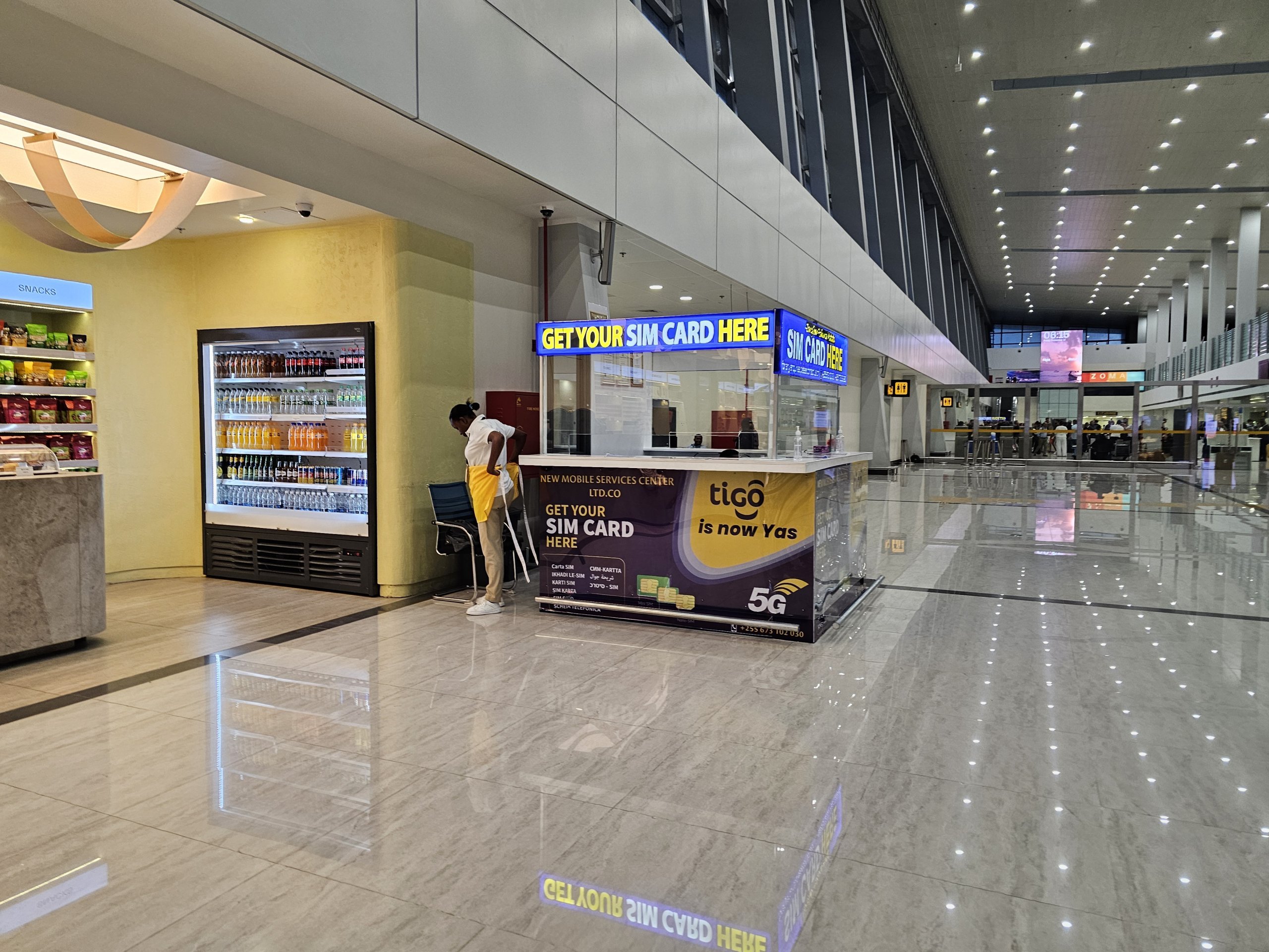 Der er en lille butik med lokale sim-kort i ankomsthallen i den internationale terminal.
