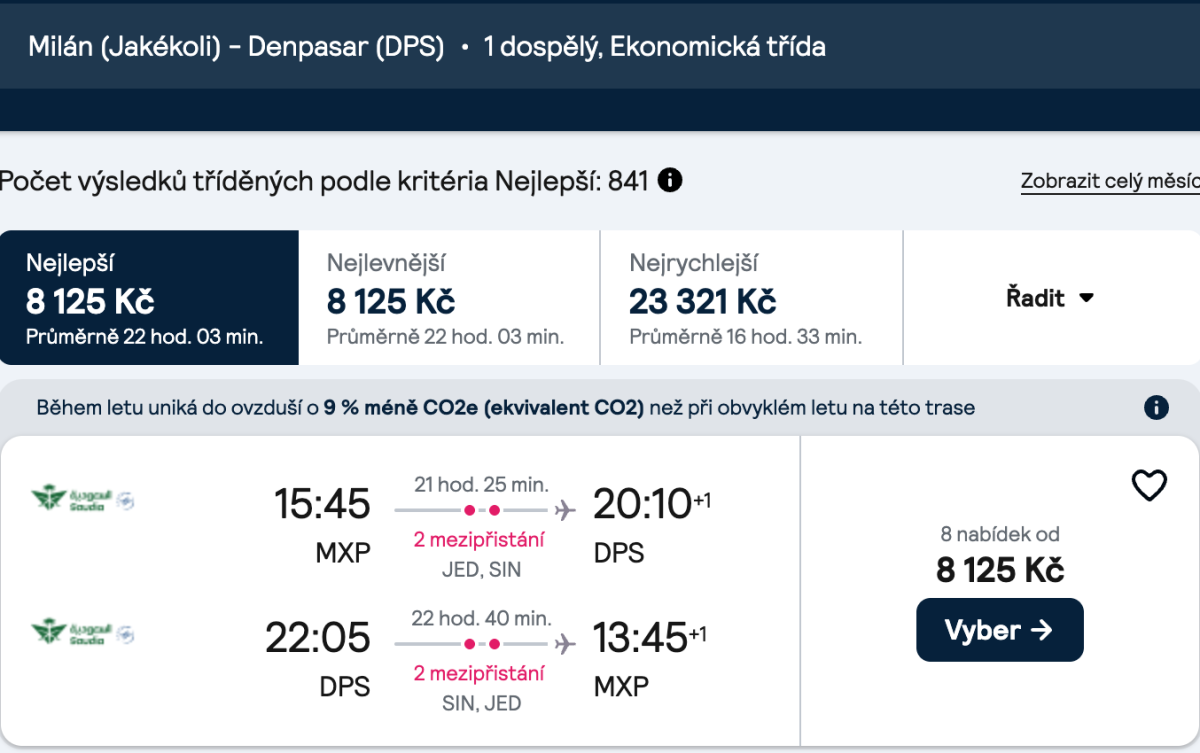 Særtilbudsbilletter, som især vil appellere til mere erfarne rejsende, der ikke har noget problem med at flyve til en fjernere metropol til en lavere pris og dermed sammensætte en 2-i-1-rejse, er tilgængelige på Saudia-vinger med afgang fra Barcelona, Milano eller Rom.